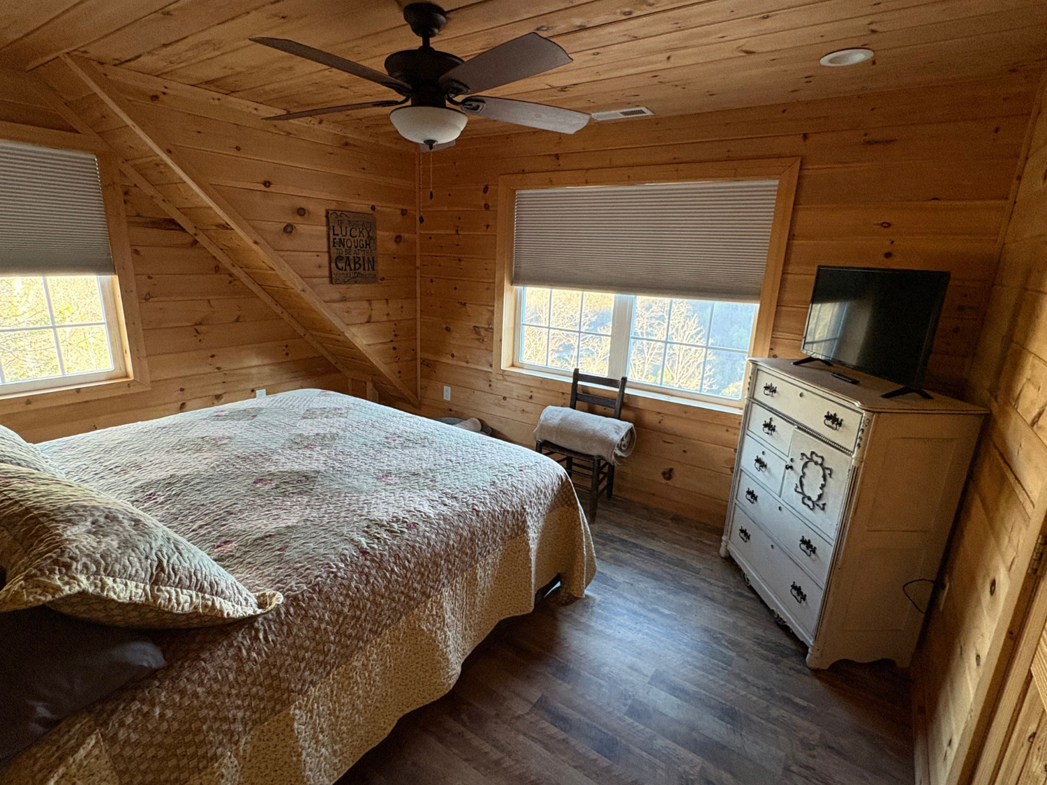 Brian’s View is a spacious 4-bedroom cabin offering breathtaking mountain views, a full kitchen, and cozy living space. Perfect for large groups, it provides the ideal mix of comfort and adventure for a relaxing mountain escape.